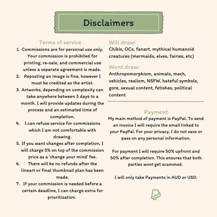 Please look at all the images provided and choose which of these best fits your needs, budget and desired aesthetics ♡Once you have selected and worked out your desired piece, please contact me via Instagram or Email